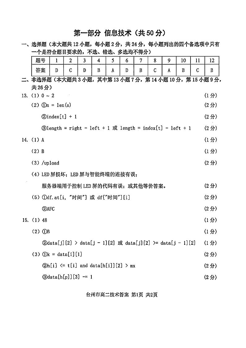 技术答案|2506台州高二期末.pdf