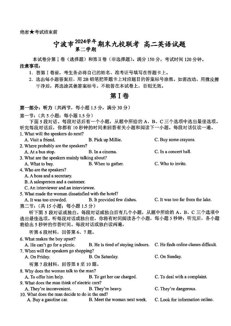 英语试题卷|2506宁波九校高二下期末联考.pdf