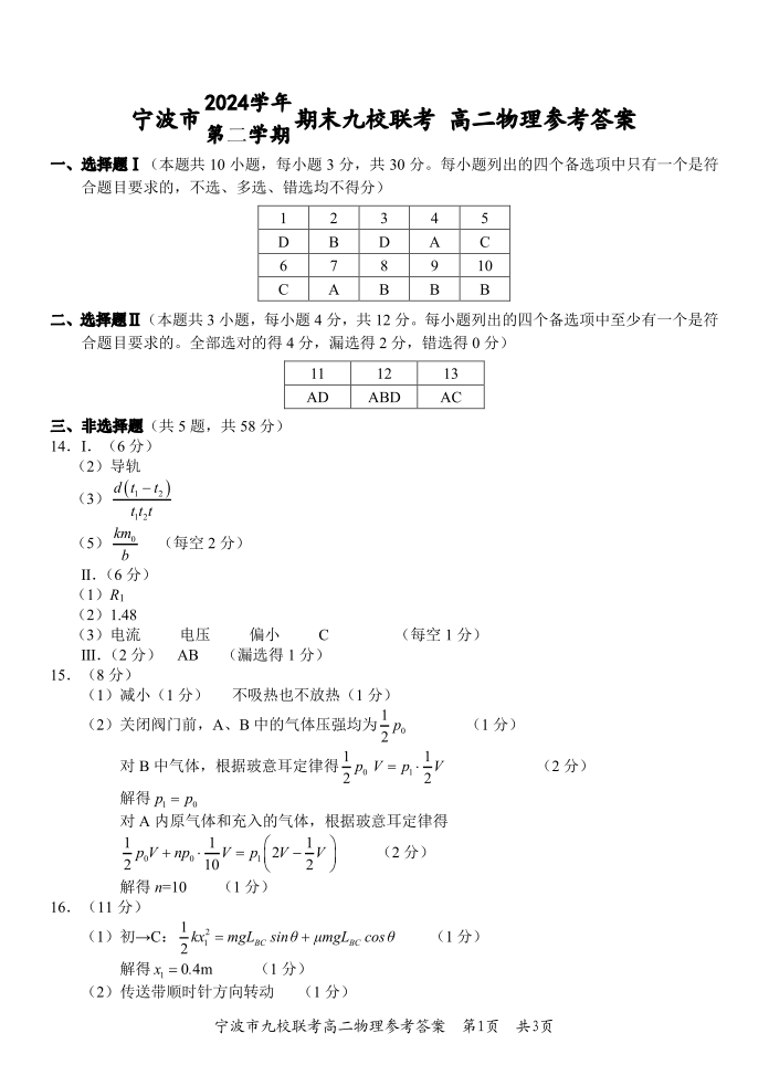 物理试题卷|2506宁波九校高二下期末联考答案.pdf