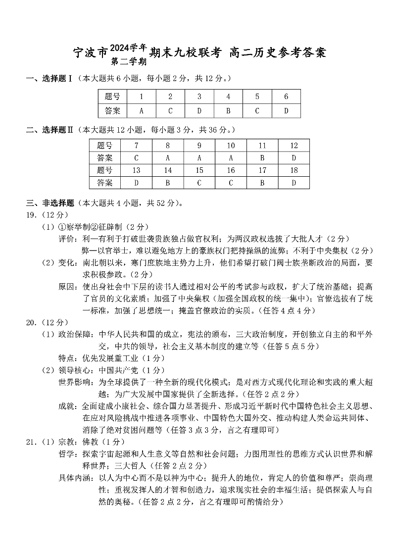 历史试题卷|2506宁波九校高二下期末联考答案.pdf