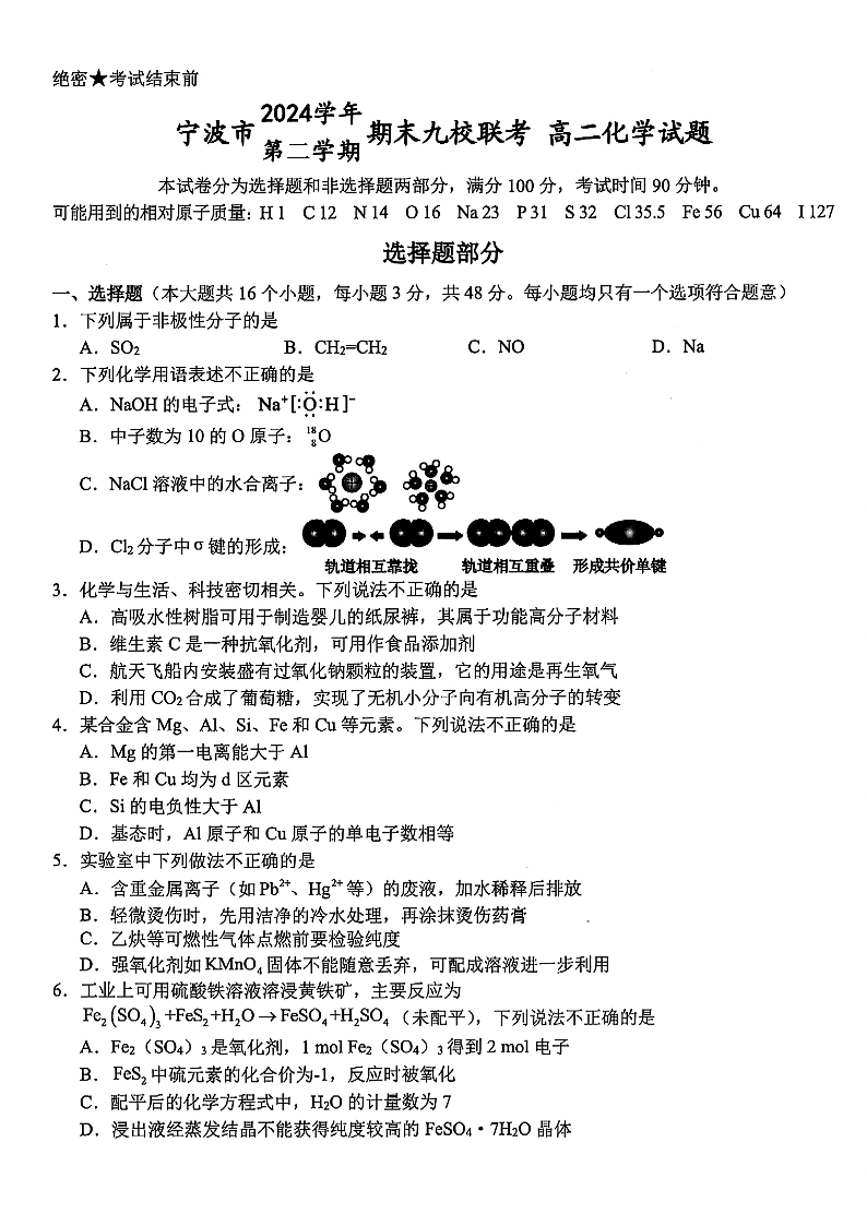 化学试题卷|2506宁波九校高二下期末联考.pdf
