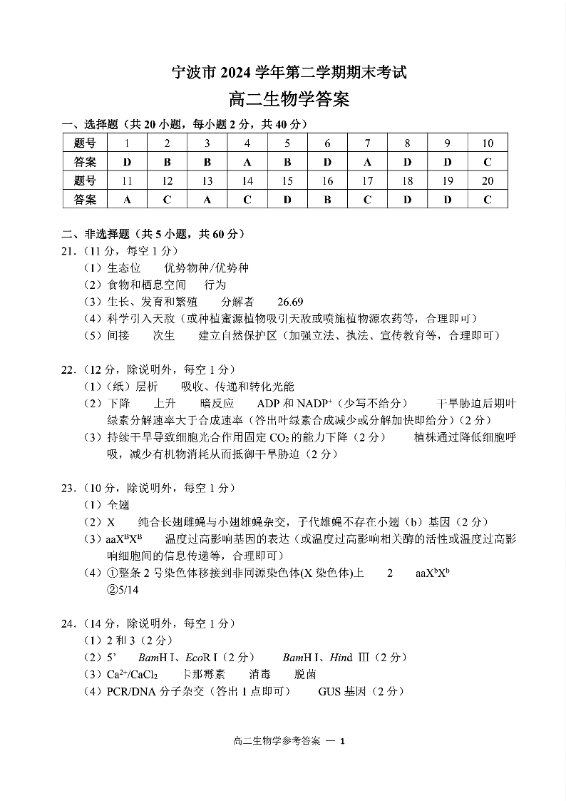 生物试题卷|2506宁波高二下期末考答案.pdf