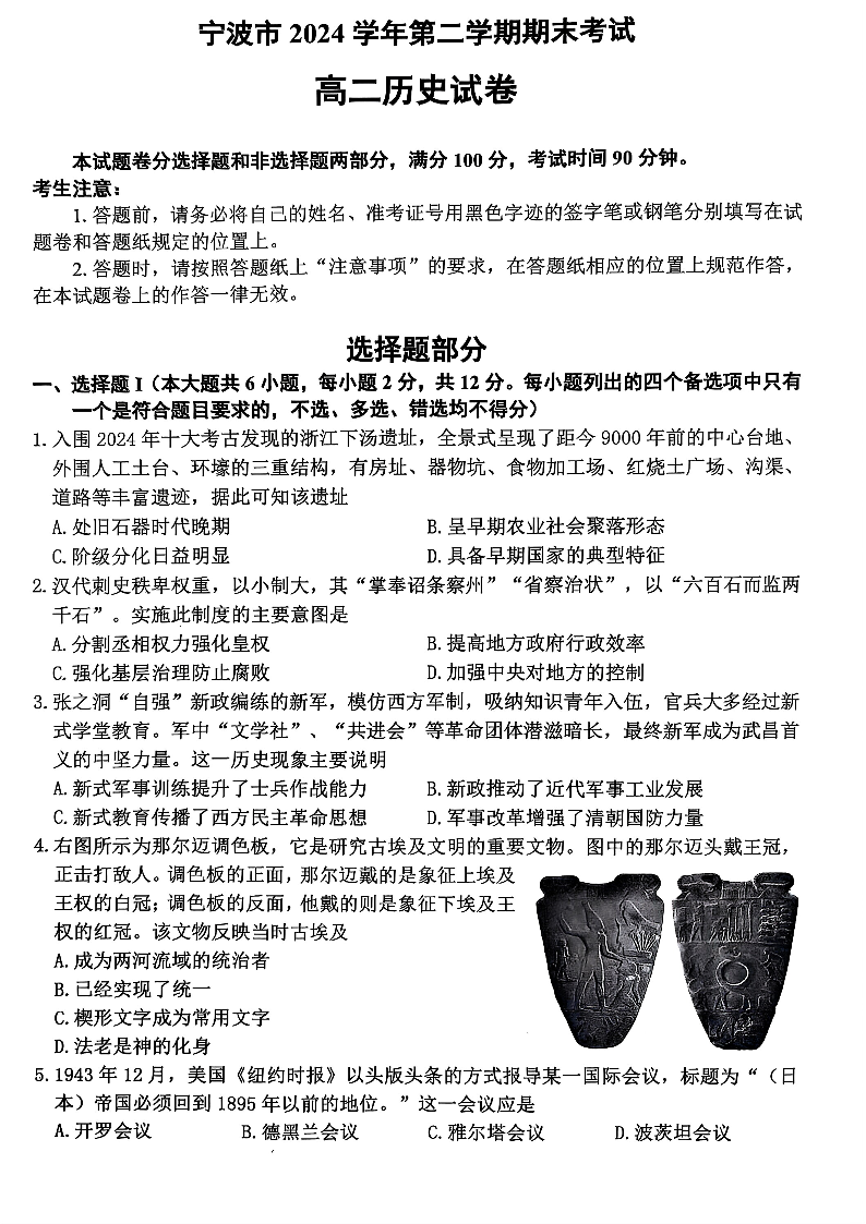 历史试题卷|2506宁波高二下期末考.pdf