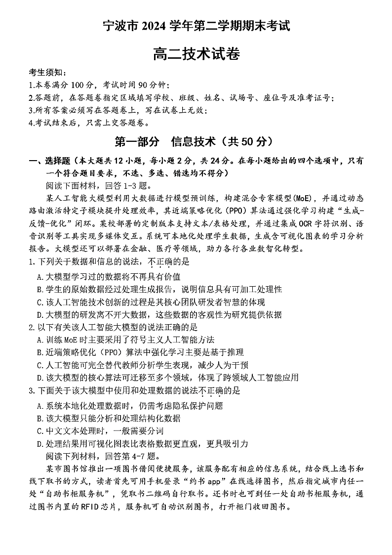 技术试题卷|2506宁波高二下期末考.pdf