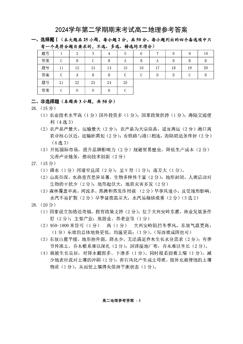 地理试题卷|2506宁波高二下期末考答案.pdf