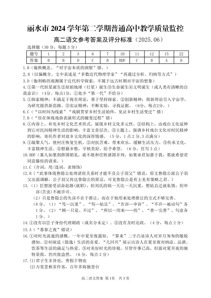 语文试题卷|2506丽水高二下期末统考答案.pdf