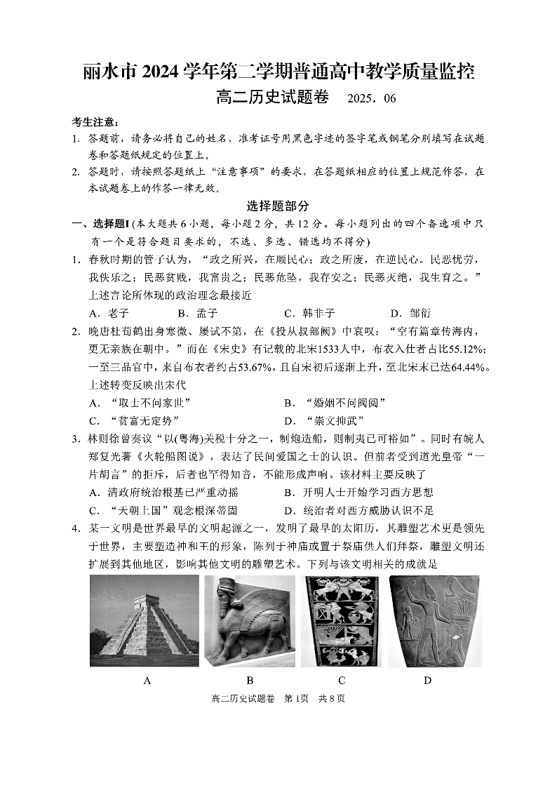 历史试题卷|2506丽水高二下期末统考.pdf