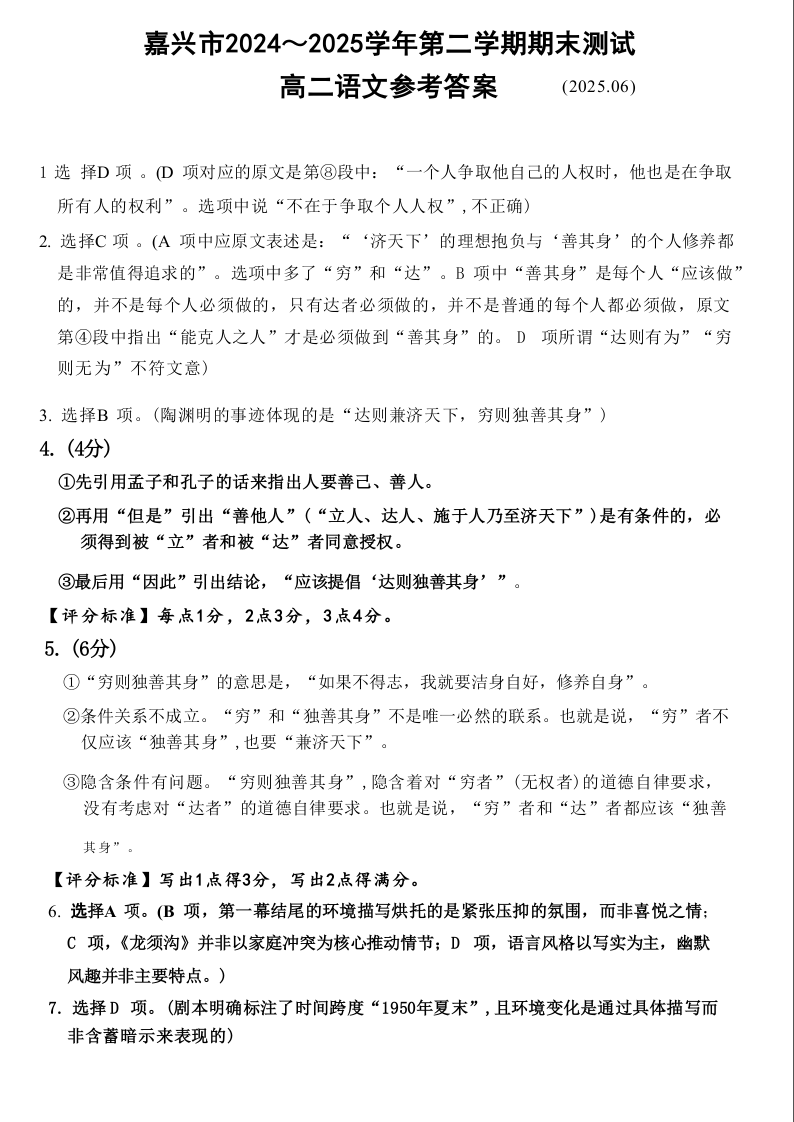 语文试题卷|2506嘉兴高二下期末统考答案.docx