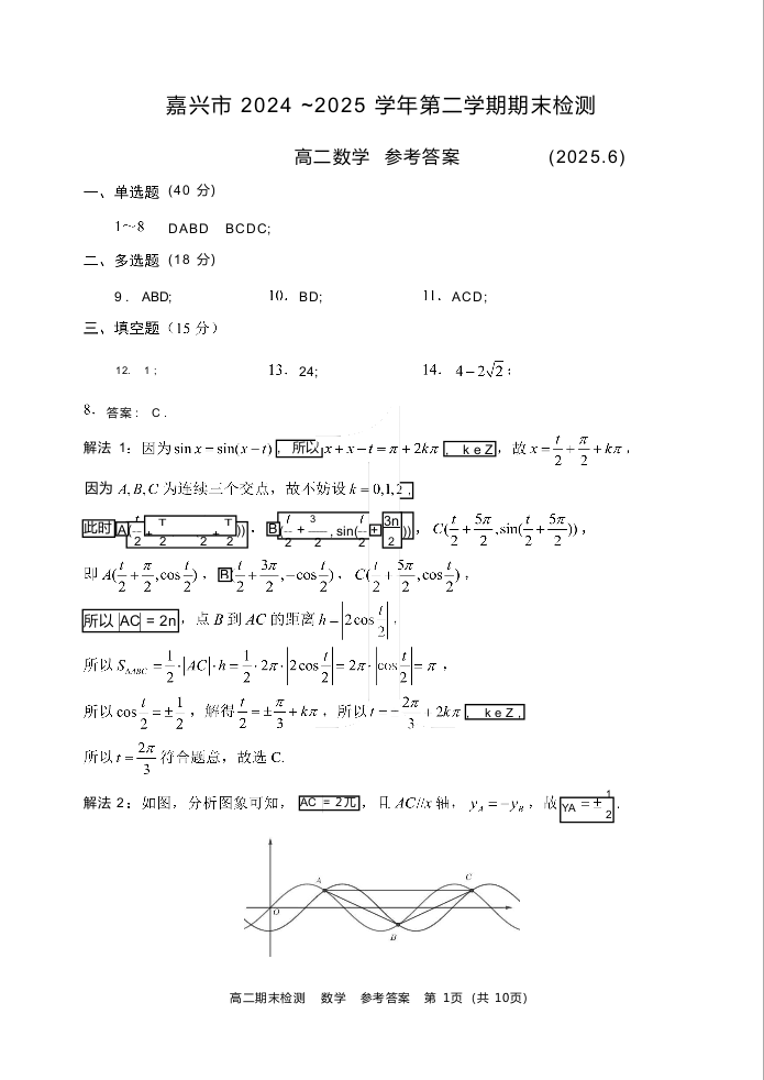 数学试题卷|2506嘉兴高二下期末统考答案.docx