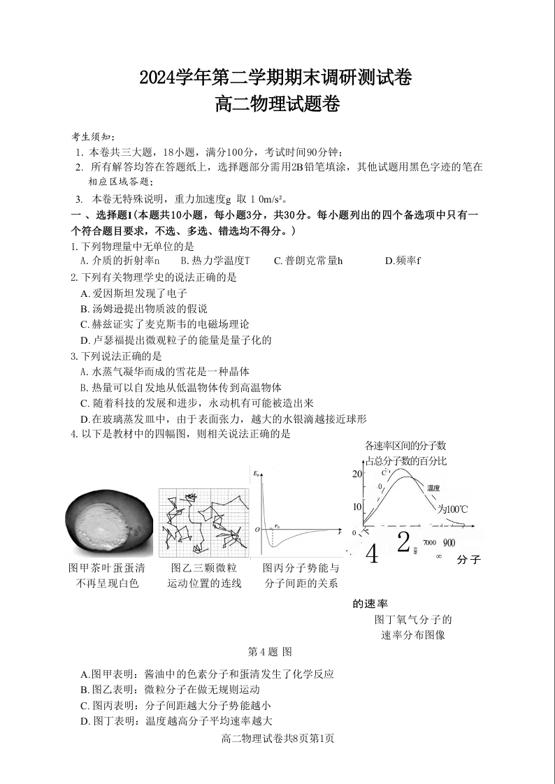 物理试题卷|2506湖州高二下期末统考.docx