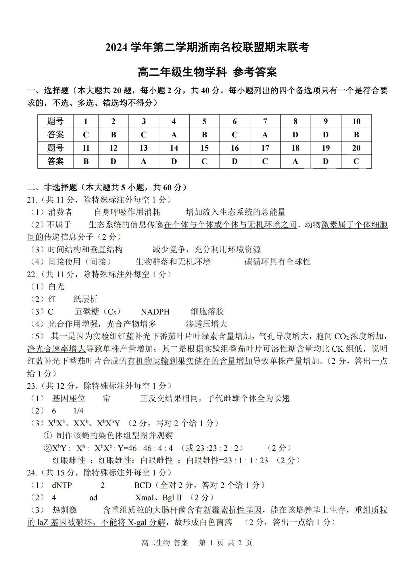 生物试题卷|2506浙南名校联盟高二下期末统考答案.pdf