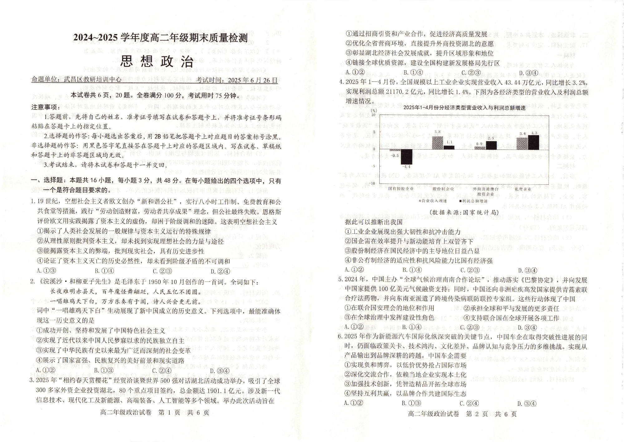 湖北省武昌区2024~2025学年度高二年级下学期期末质量检测 政治.pdf