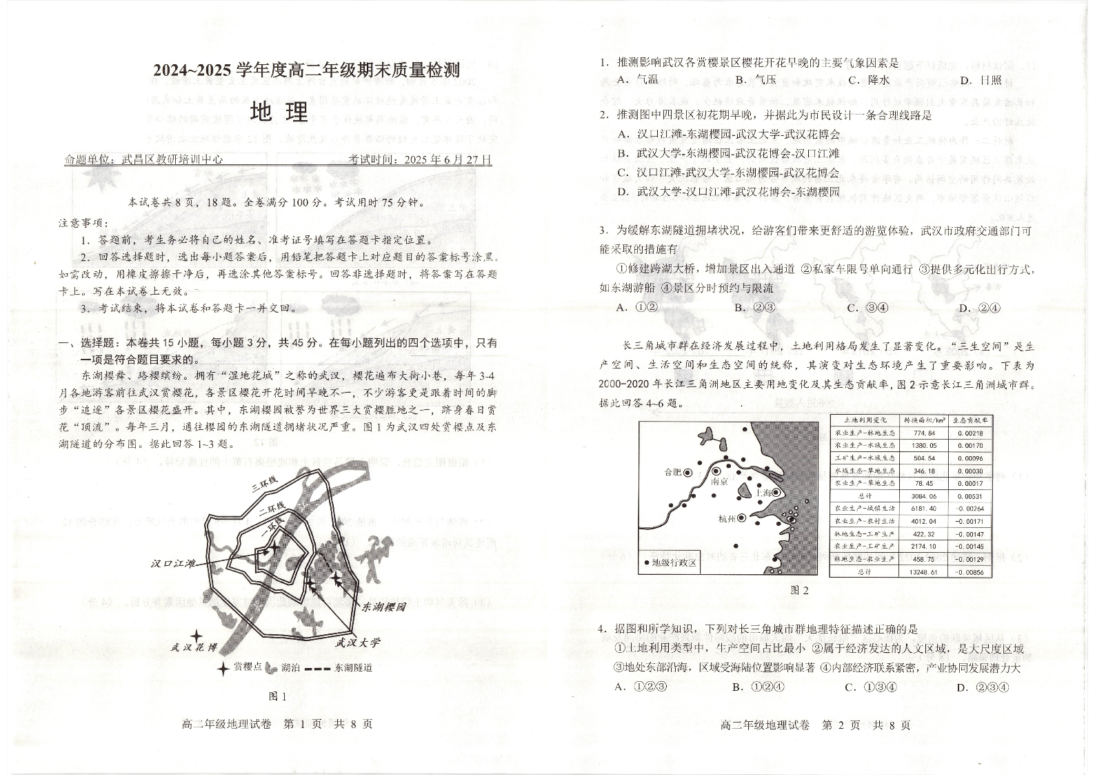 湖北省武昌区2024~2025学年度高二年级下学期期末质量检测 地理.pdf