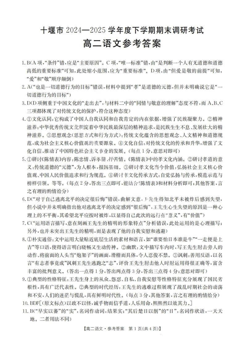 湖北省十堰市2024-2025学年度下学期高二年级期末调研考试 语文答案.pdf