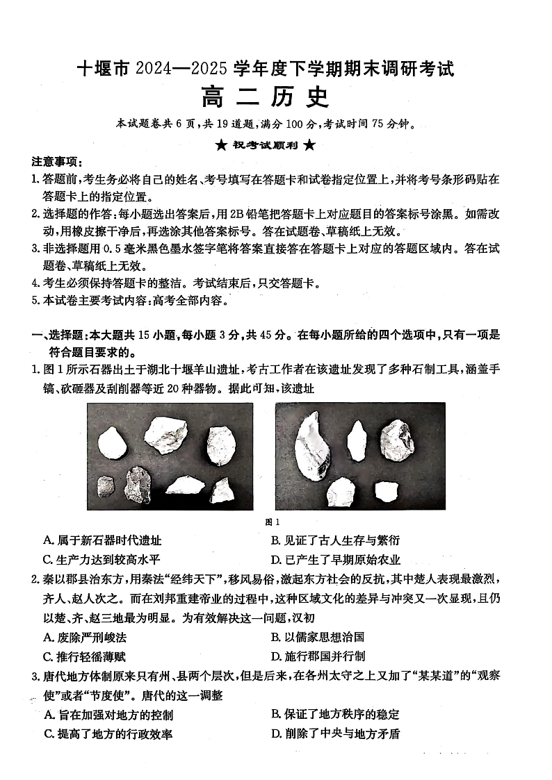 湖北省十堰市2024-2025学年度下学期高二年级期末调研考试 历史.pdf