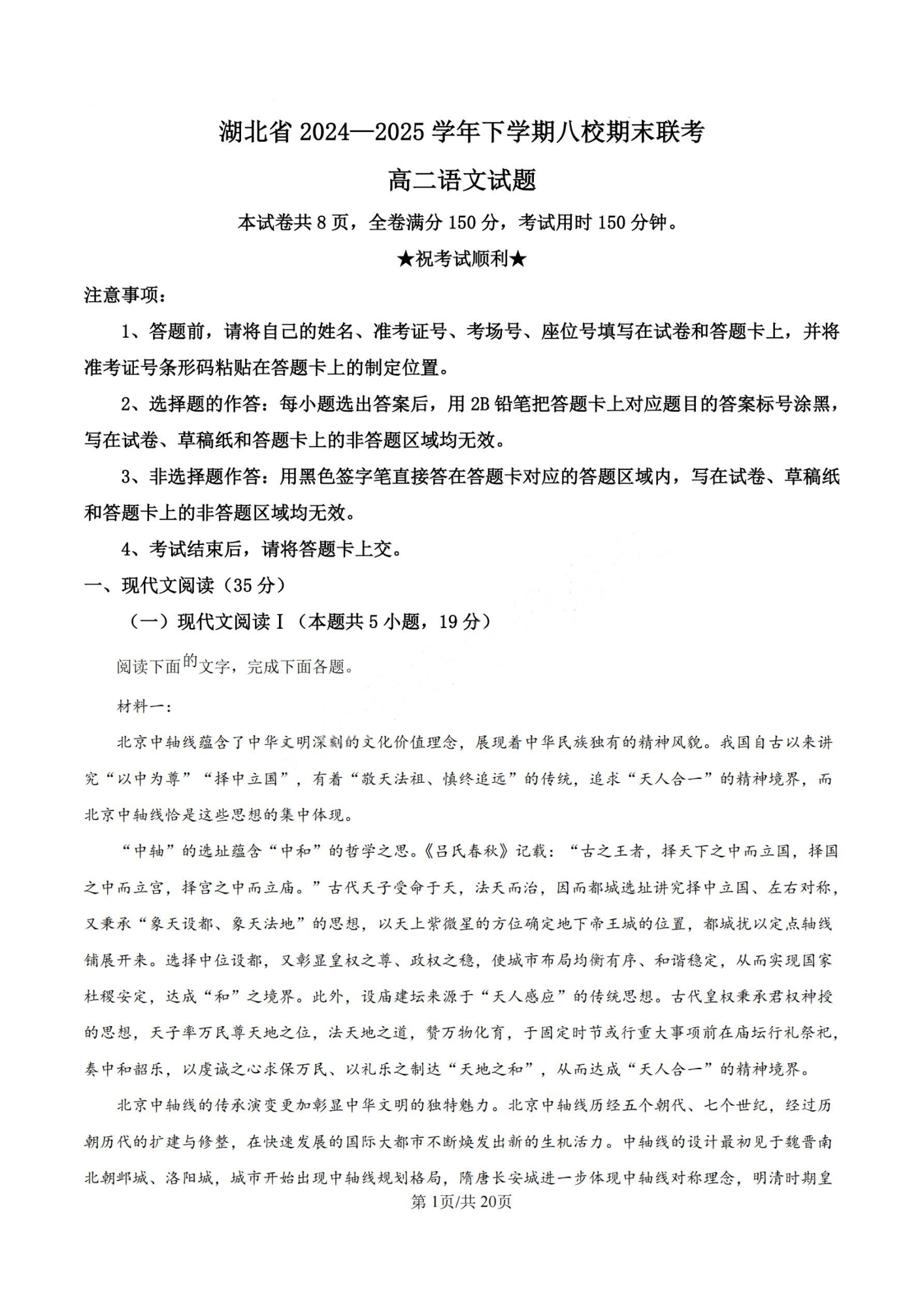 湖北省2024-2025学年下学期高二年级八校期末联考 语文答案.pdf