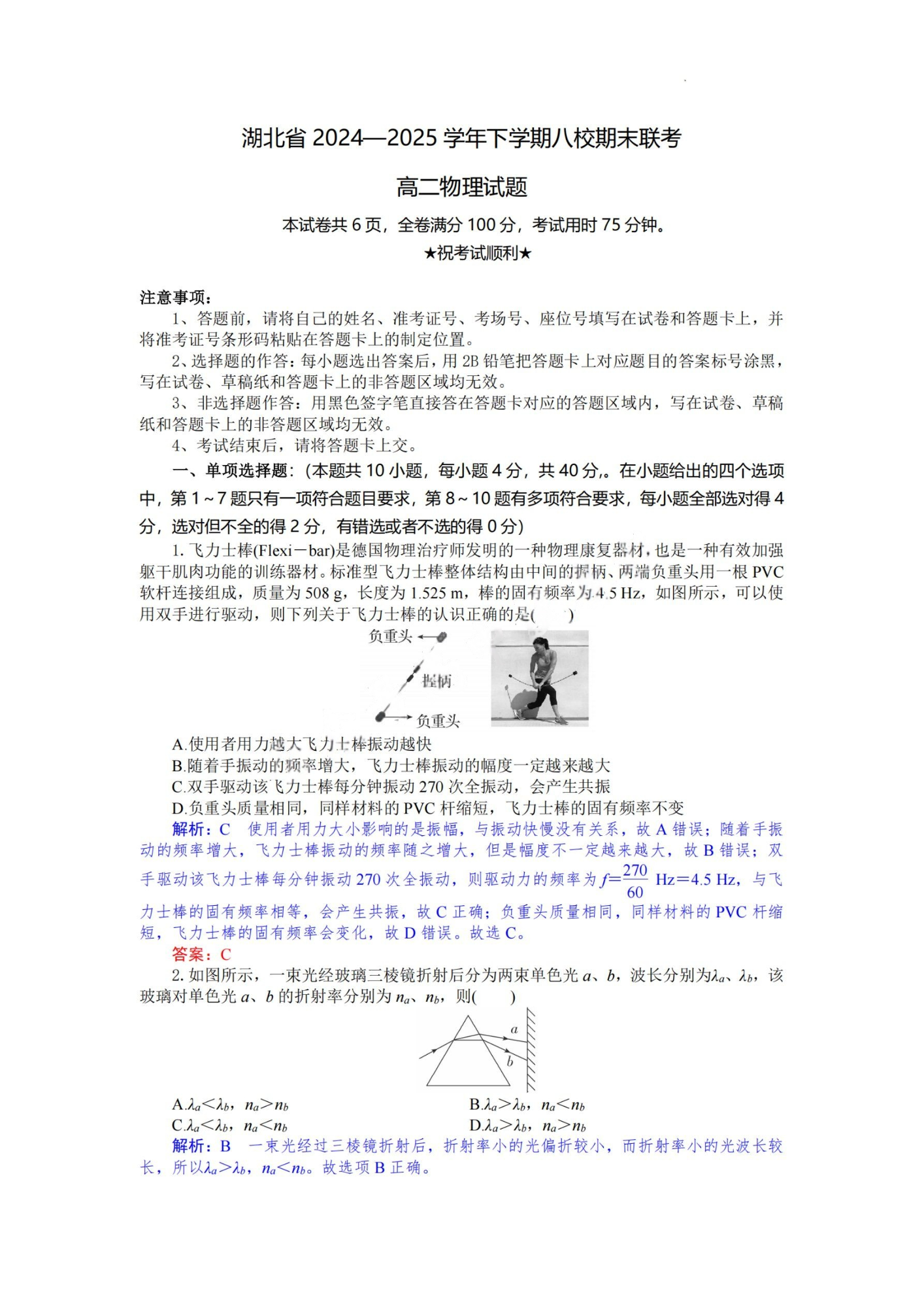 湖北省2024-2025学年下学期高二年级八校期末联考 物理答案.pdf