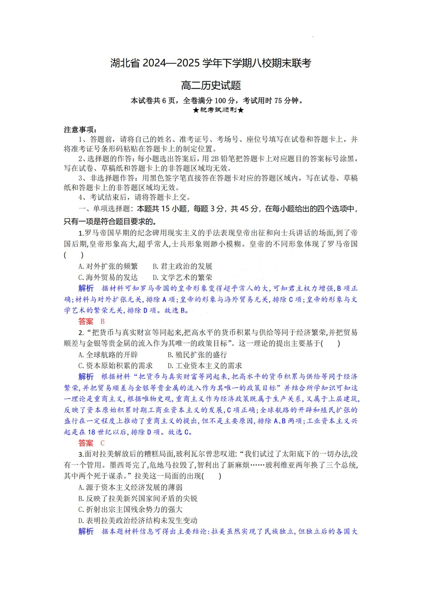 湖北省2024-2025学年下学期高二年级八校期末联考 历史答案.pdf