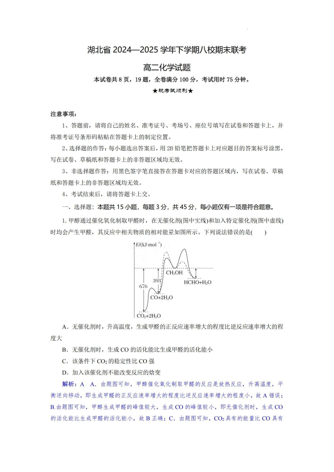 湖北省2024-2025学年下学期高二年级八校期末联考 化学答案.pdf