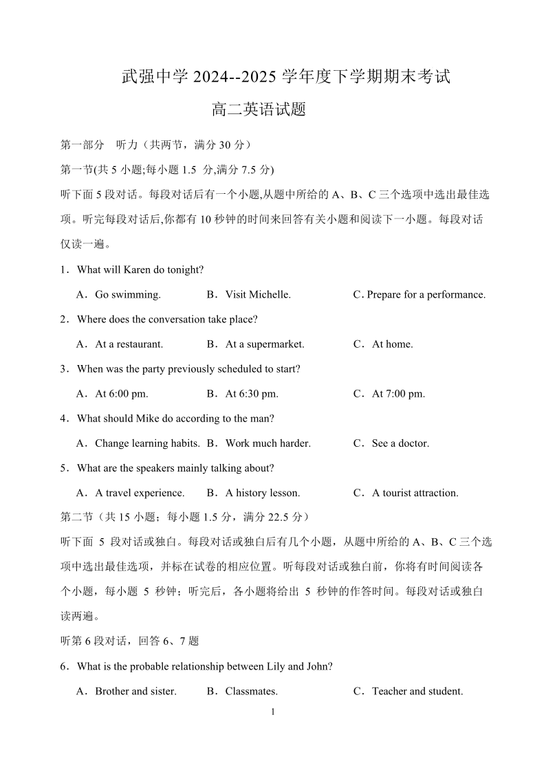 河北省衡水市武强中学2024-2025学年高二下学期期末考试 英语试卷(含答案).pdf