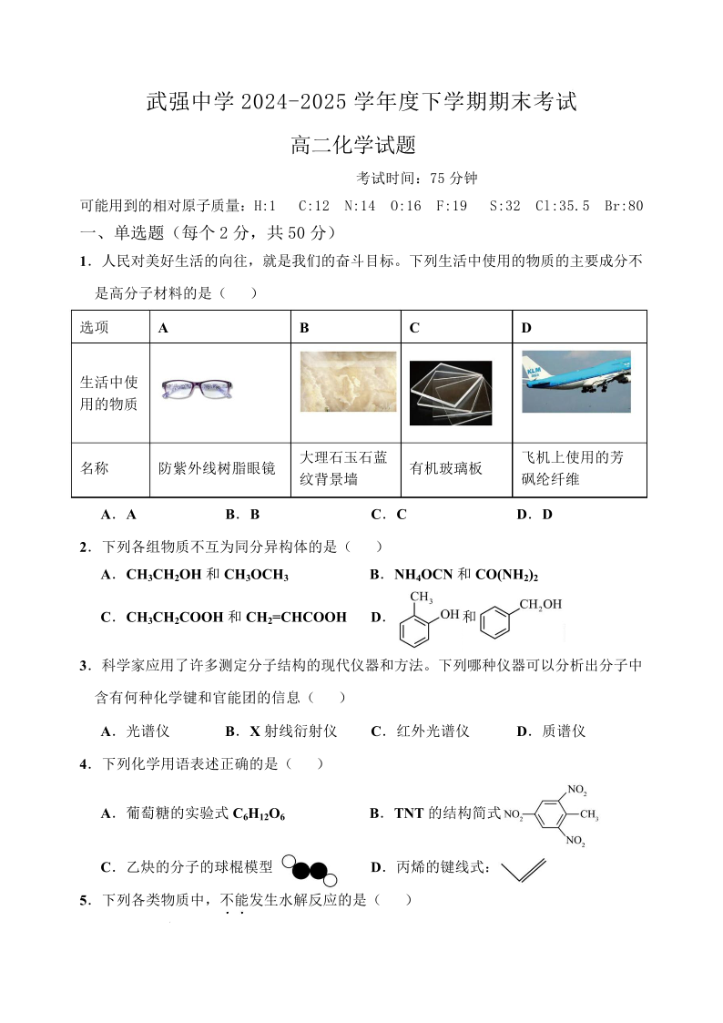 河北省衡水市武强中学2024-2025学年高二下学期期末考试 化学试卷(含答案).pdf