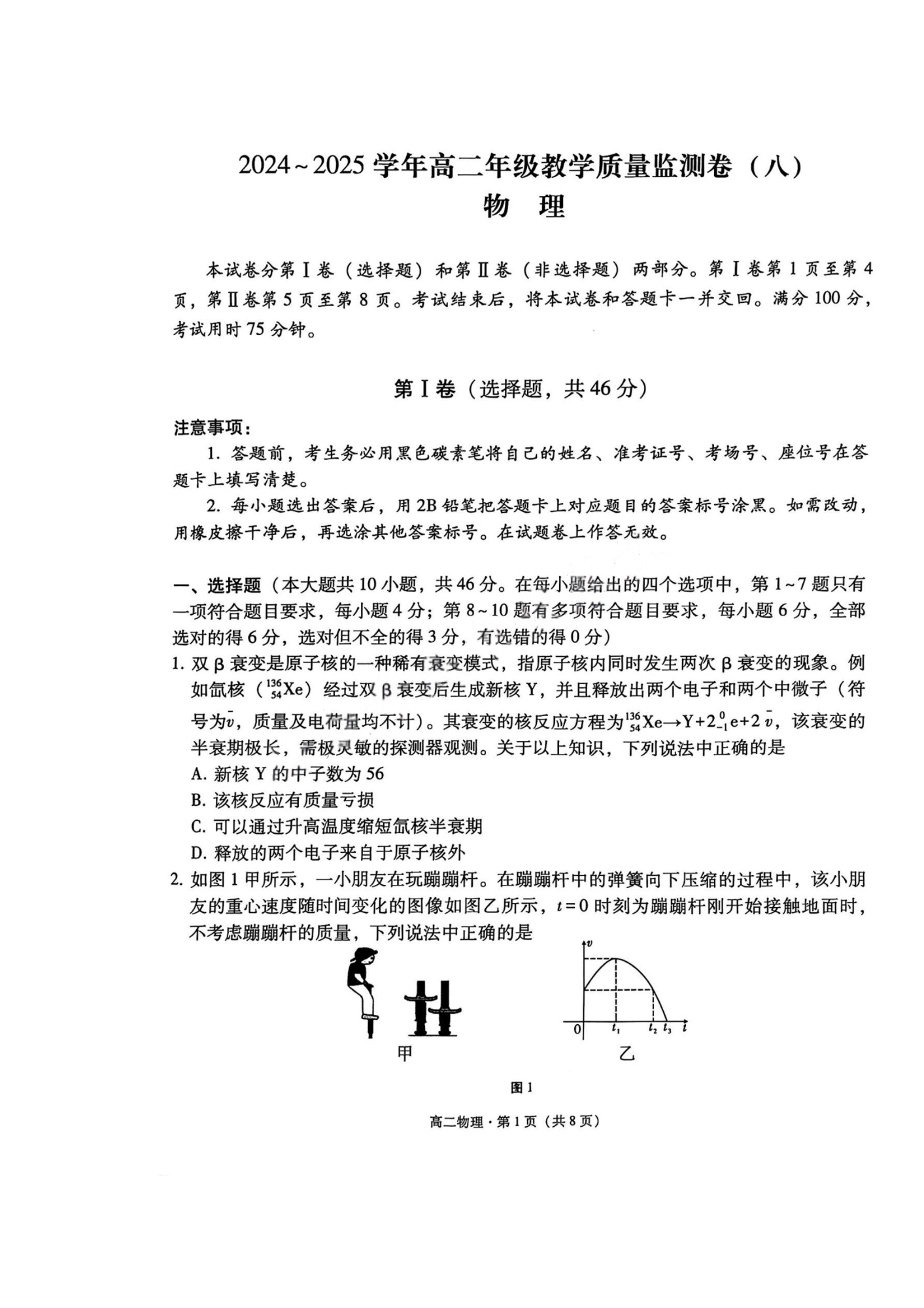 云南师大附中2024-2025学年高二年级教学质量监测卷(八)物理.pdf