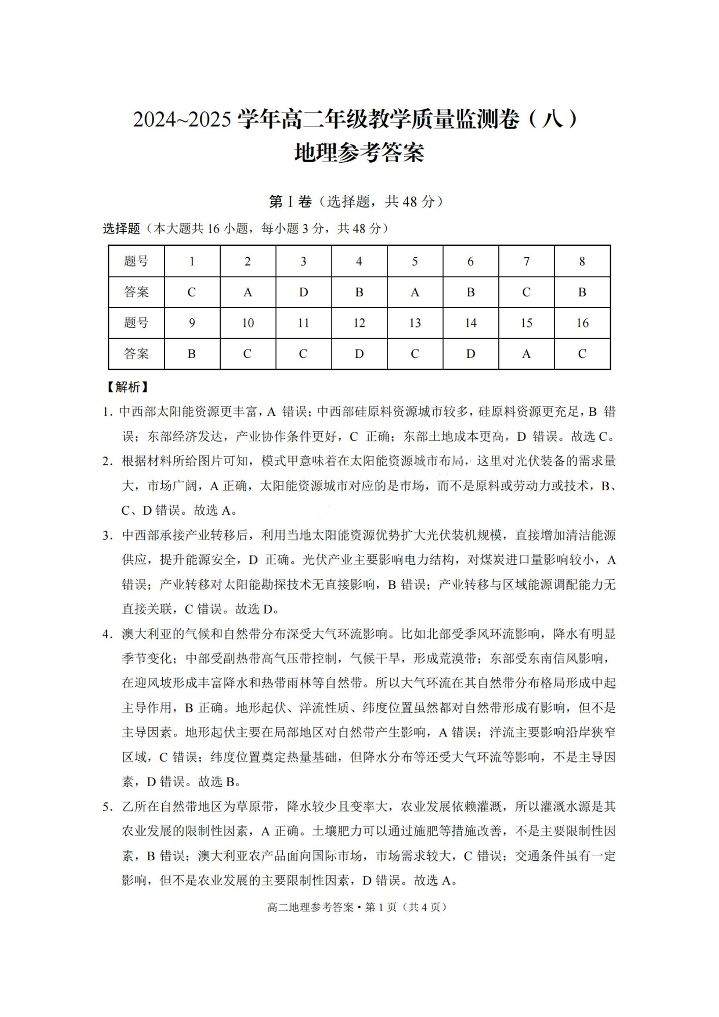 云南师大附中2024-2025学年高二年级教学质量监测卷(八)地理答案.pdf