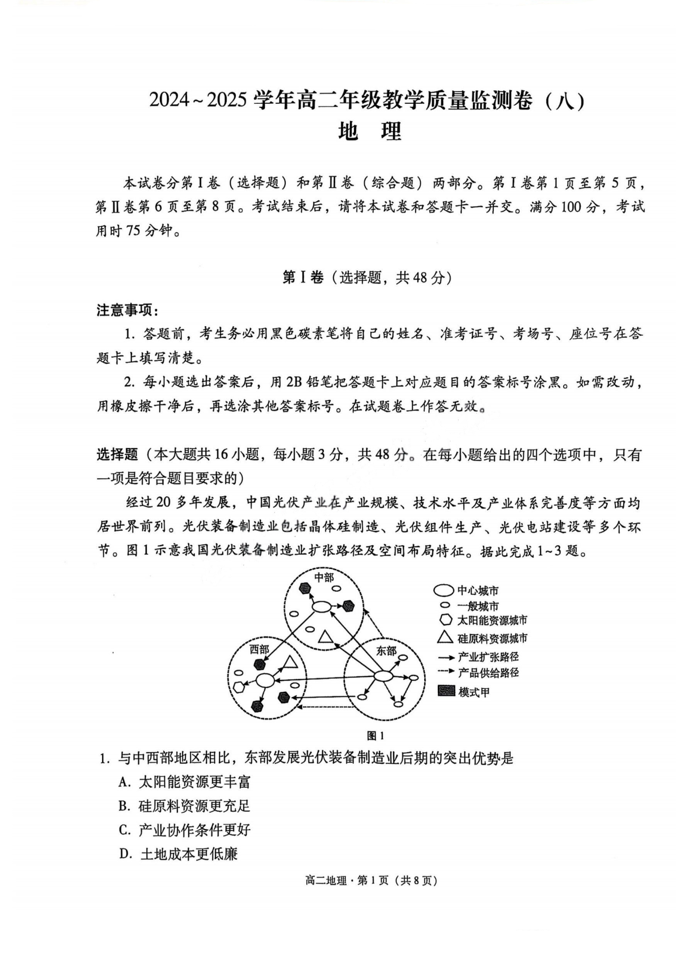 云南师大附中2024-2025学年高二年级教学质量监测卷(八)地理.pdf