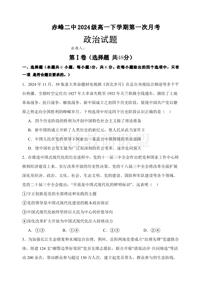 内蒙古赤峰二中2024级高一下学期第二次月考 政治试题(含答案).pdf