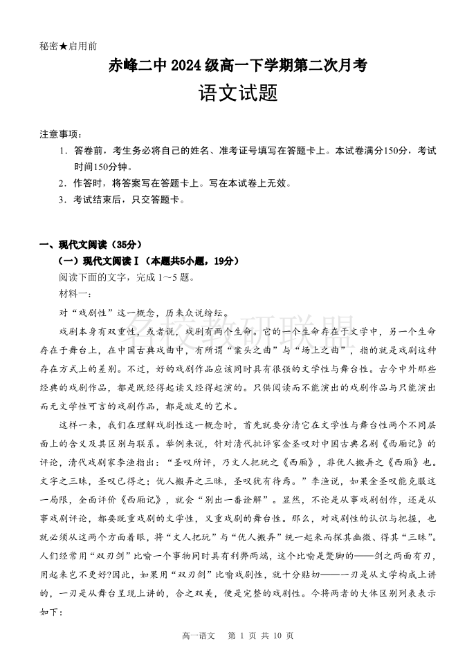 内蒙古赤峰二中2024级高一下学期第二次月考 语文试卷(含答案).pdf