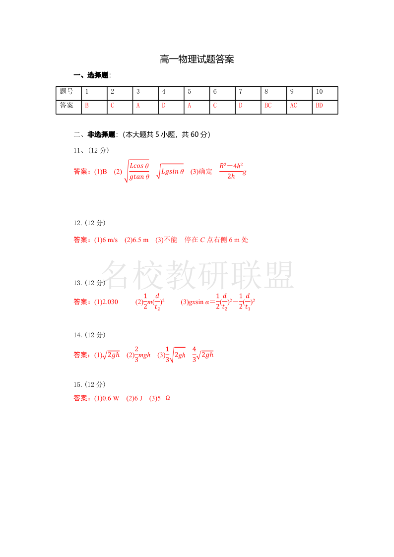 湖北省襄阳随州部分高中2024-2025学年高一下学期期末联考 物理答案.pdf