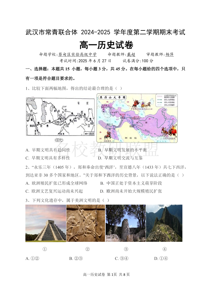 武汉市常青联合体2024-2025学年度高一下学期期末考试 历史.pdf