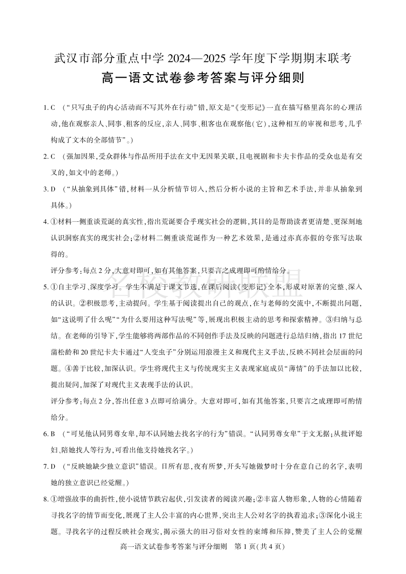 湖北省武汉市部分重点中学2024-2025学年度高一下学期期末联考 语文答案.pdf