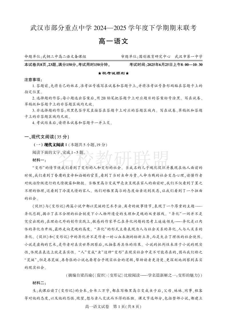 湖北省武汉市部分重点中学2024-2025学年度高一下学期期末联考 语文.pdf