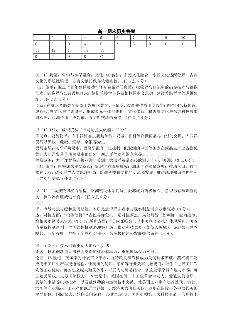 湖北省武汉市部分重点中学2024-2025学年度高一下学期期末联考 历史答案.pdf
