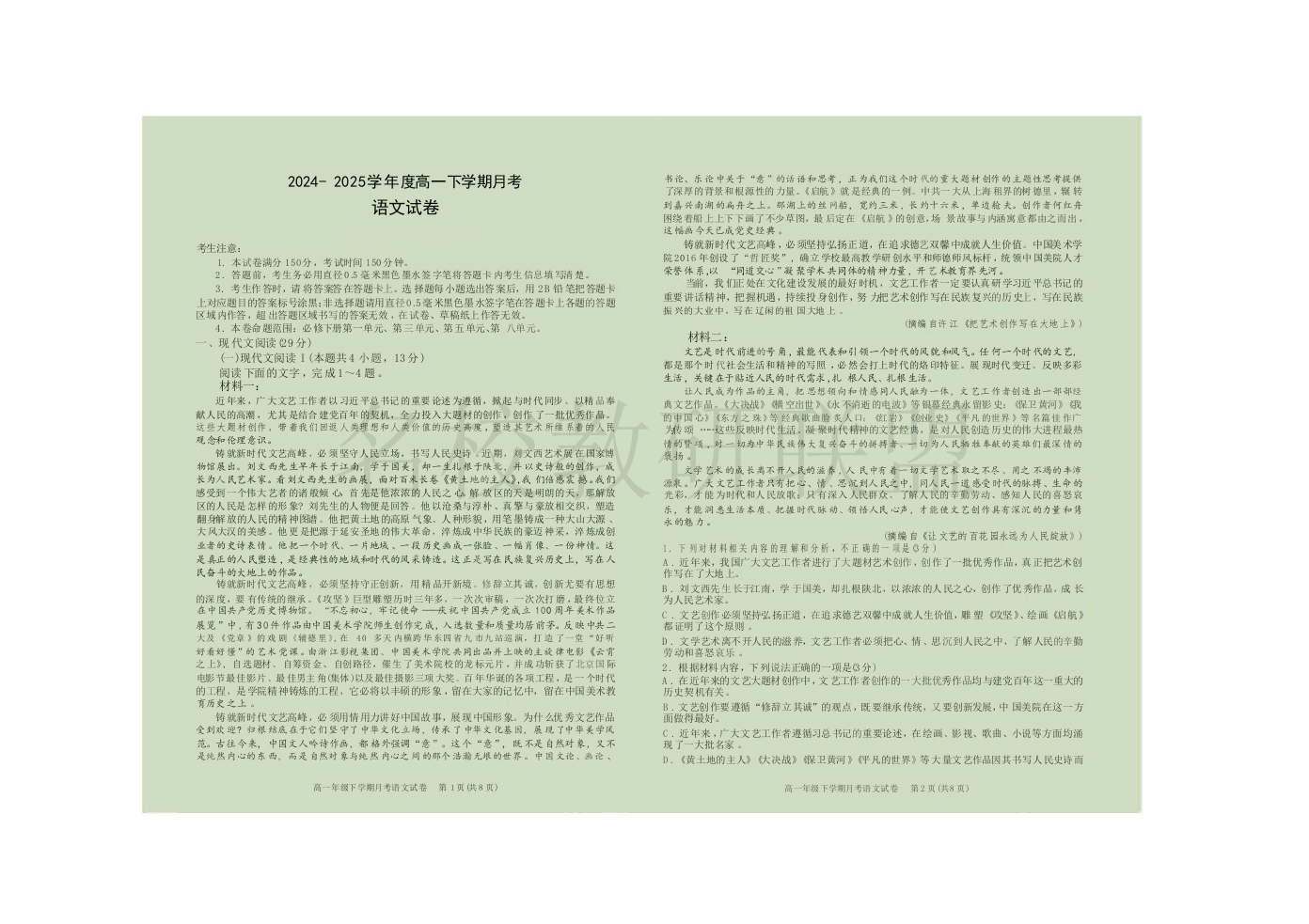 黑龙江省双鸭山市第一中学2024-2025学年高一下学期6月月考 语文试题(含答案).pdf