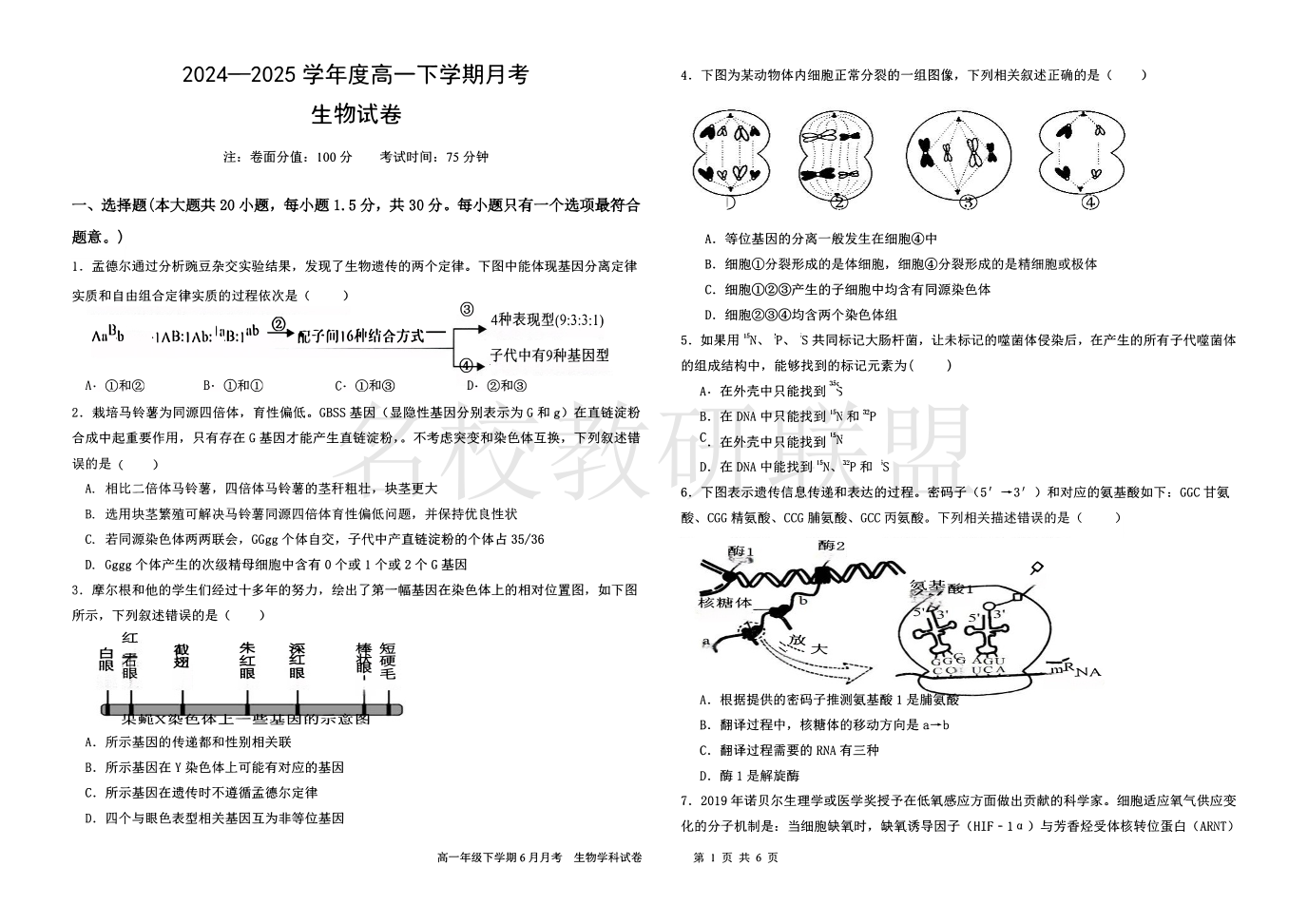 黑龙江省双鸭山市第一中学2024-2025学年高一下学期6月月考 生物试题(含答案).pdf