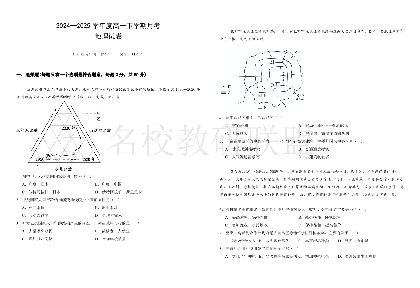 黑龙江省双鸭山市第一中学2024-2025学年高一下学期6月月考 地理试题(含答案).pdf