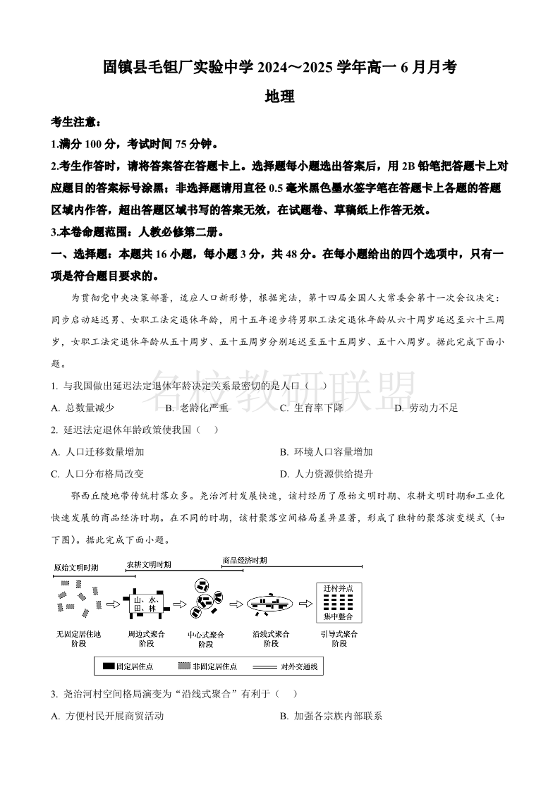 安徽省毛钽厂实验中学2024-2025学年高一下学期6月月考 地理试题(含答案).pdf