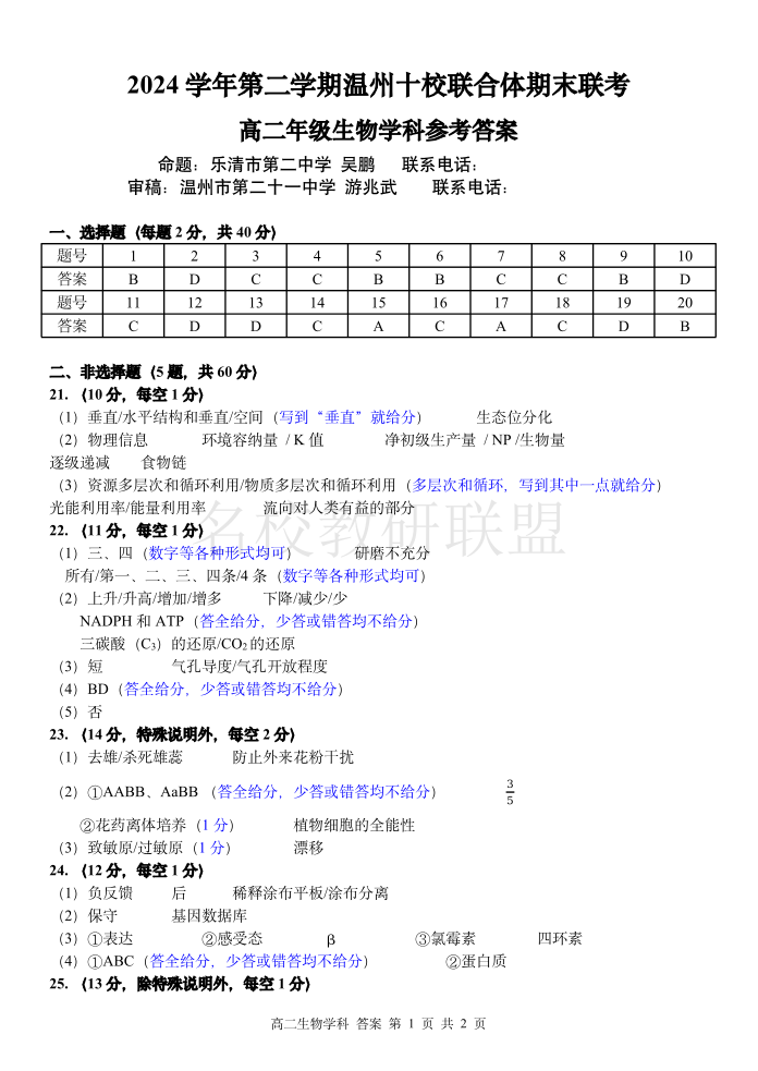 生物答案|2506温州十校期末联考.pdf