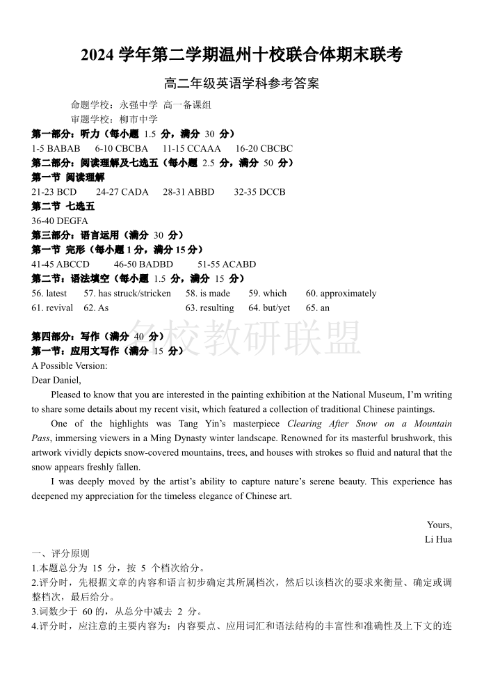 英语答案|2506温州十校期末联考.pdf