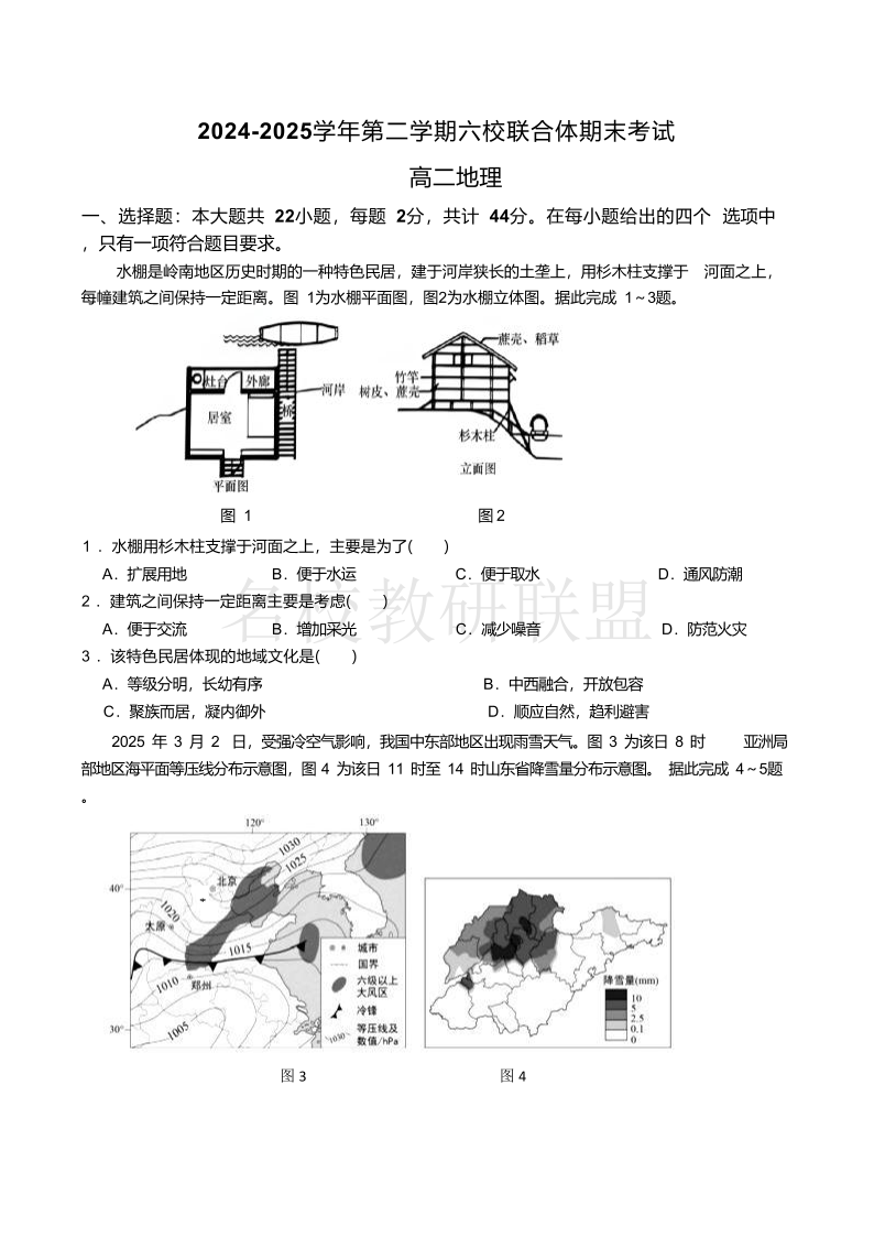 江苏省南京市2024-2025学年高二下学期六校联合体期末考试 地理试卷(含答案).pdf