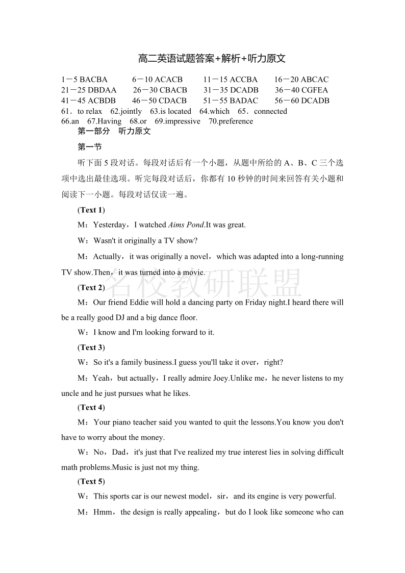 湖北省襄阳市随州部分高中2024-2025学年高二下学期期末联考 英语答案.pdf