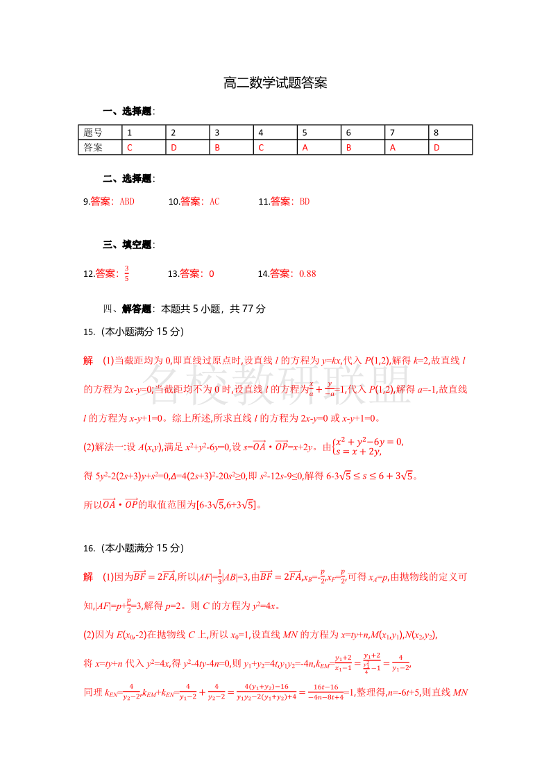 湖北省襄阳市随州部分高中2024-2025学年高二下学期期末联考 数学答案.pdf