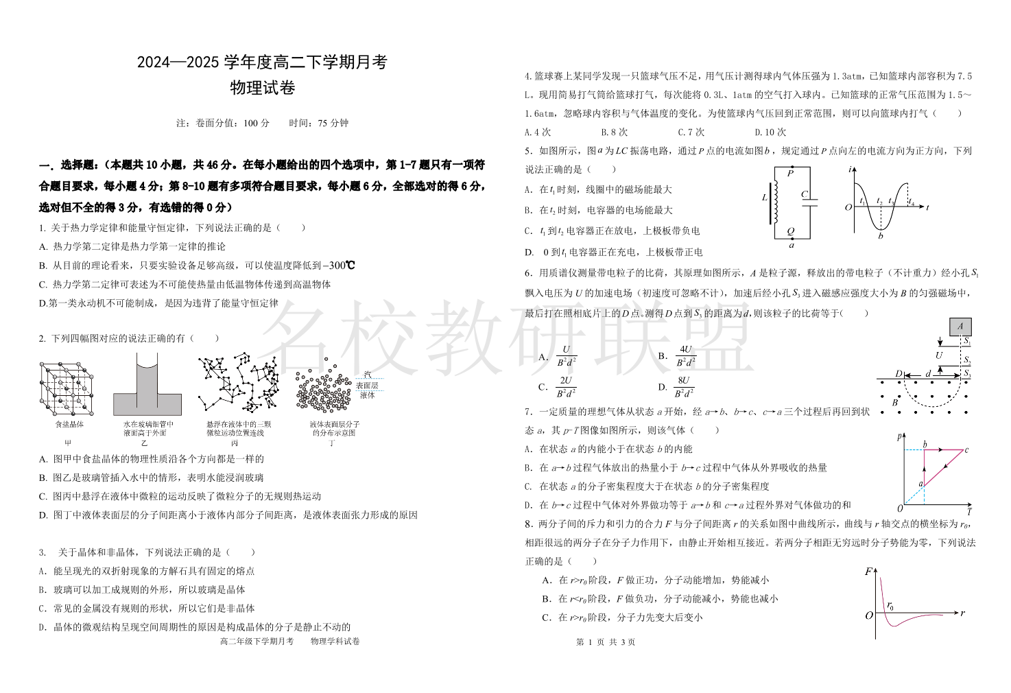 黑龙江省双鸭山市第一中学2024-2025学年高二下学期6月月考 物理.pdf