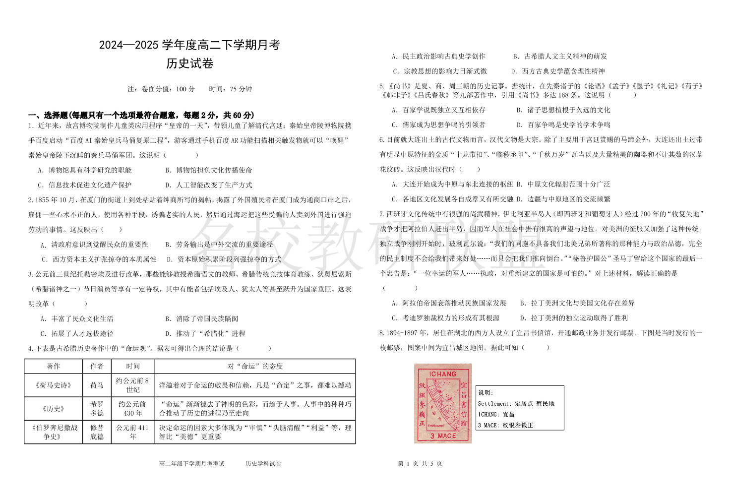 黑龙江省双鸭山市第一中学2024-2025学年高二下学期6月月考 历史.pdf