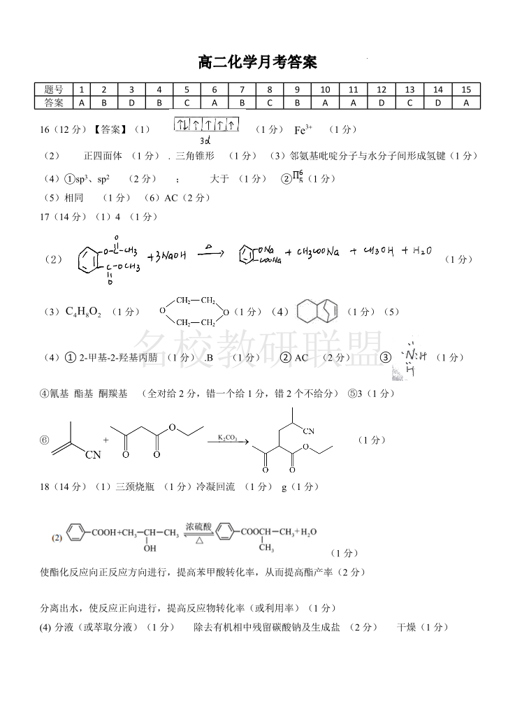 黑龙江省双鸭山市第一中学2024-2025学年高二下学期6月月考 化学答案.pdf