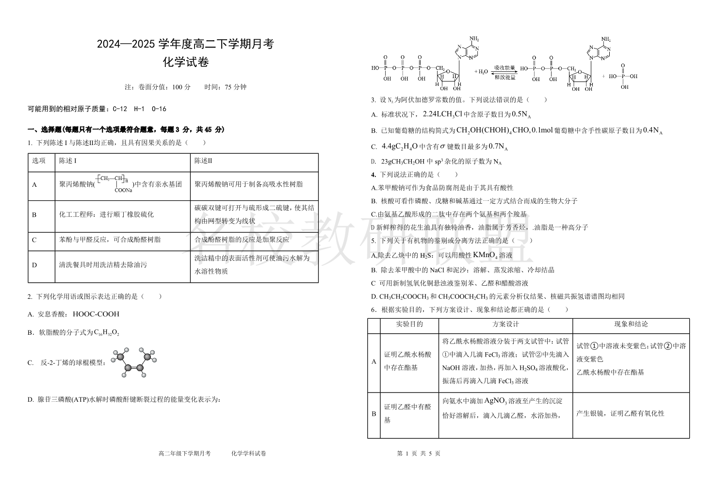 黑龙江省双鸭山市第一中学2024-2025学年高二下学期6月月考 化学.pdf