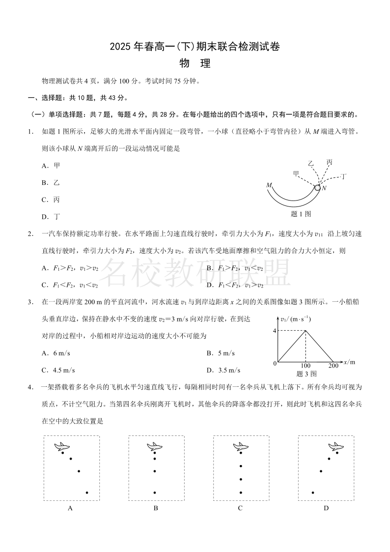 重庆市康德教育2025年春高一(下)期末联合检测 物理试卷(含答案).pdf