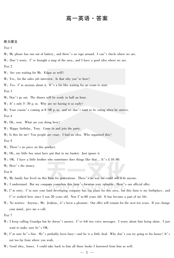 英语湖南高一下期末详细答案.pdf
